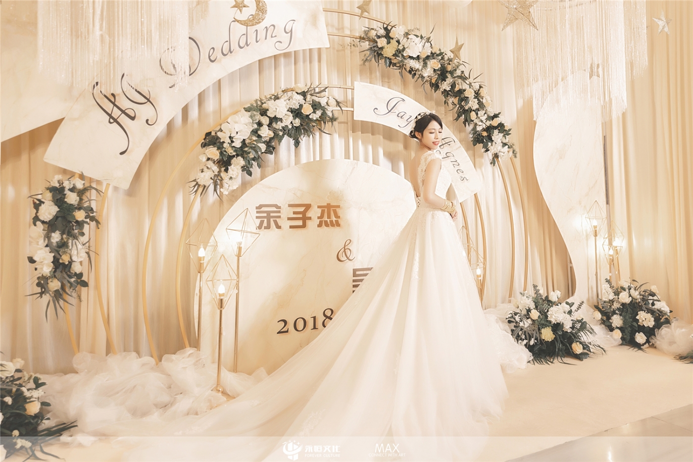 1.留影区背景-吊顶类类,约长6m*高3.6m 2.留影区基础面光灯6台 3.婚礼迎宾牌1块 *该布置花艺为仿真花搭配 *留影区消费满5k可重新设计,具体费用可联系客服 *具体尺寸需按实际场地规划,变化较大会影响费用 *价格仅包含婚礼布置费用,具体费用可联系客服