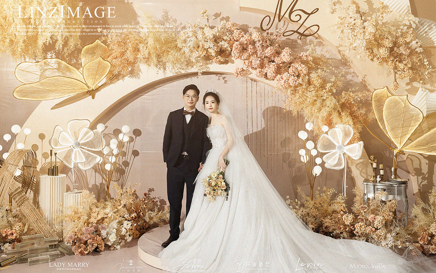 1.留影区背景-平面多层类,约长6m*高3m 2.留影区基础面光灯6台 3.婚礼迎宾牌1块 *该布置花艺为仿真花搭配 *留影区消费满5k可重新设计,具体费用可联系客服 *具体尺寸需按实际场地规划,变化较大会影响费用 *价格仅包含婚礼布置费用,具体费用可联系客服