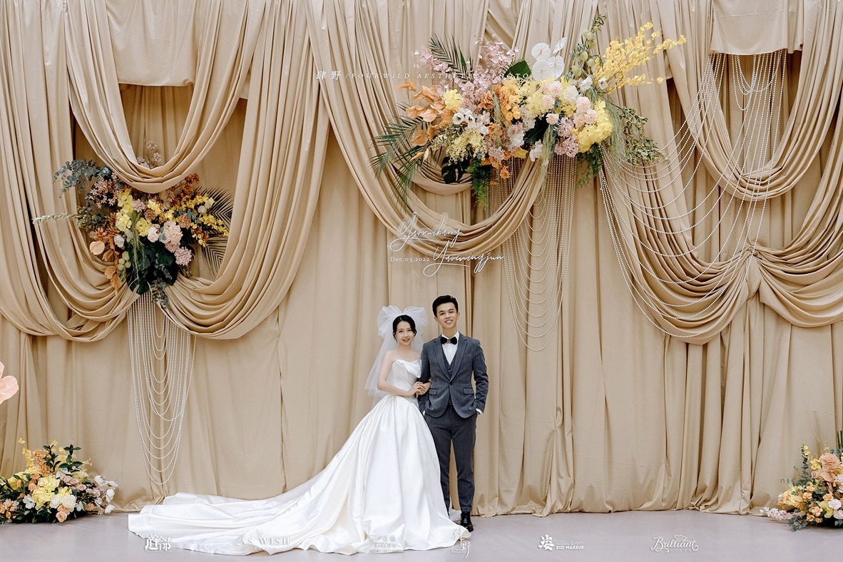 服务详情1.留影区背景-多层背景类,约长6m*高3m 2.T台,长15-20m,不同场地不同尺寸 2.1 交接处主题装饰 3.交接处落地装饰 4.T台路引10组,交接处主题花艺 5.留影区基础面光灯8台 6.交接处基础面光灯8台 7.舞台基础面光灯10台 8.追光灯1台 9.婚礼迎宾牌1块 10.舞台背景长10m*高4m 11.主题色鲜花手捧花1束,婚礼用 12.主题色鲜花胸花18朵,婚礼用 *全场消费满1.5w可重新设计,具体费用可联系客服 *具体尺寸需按实际场地规划,变化较大会影响费用 *价格仅包含婚礼布置费用,具体费用可联系客服