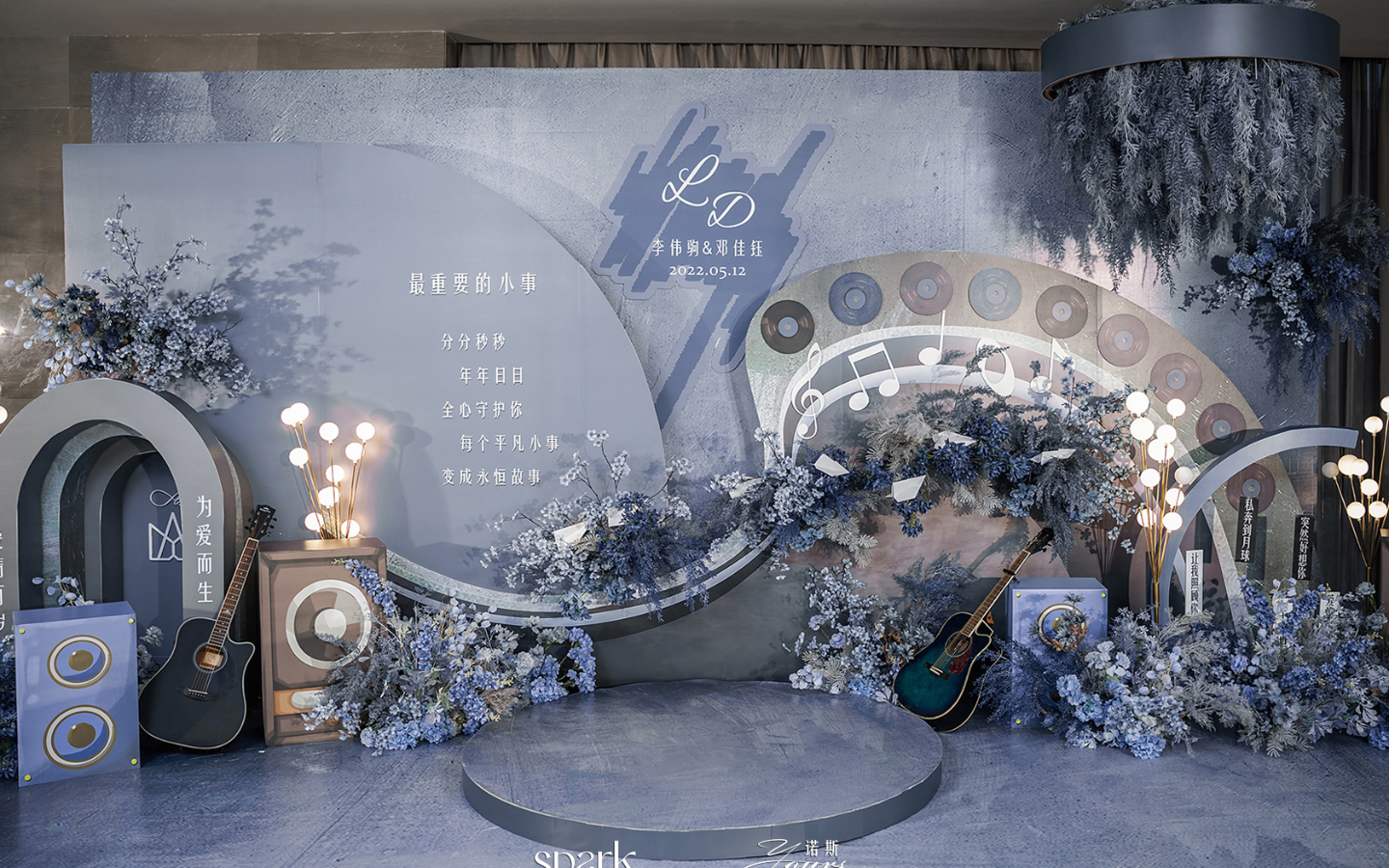 服务详情1.留影区背景,约长6m*高3.2m内 2.T台,长16m,不同场地不同尺寸 3.交接处,中小吊顶/拱门造型 4.路引10组 5.留影区基础面光灯6台 6.交接区基础面光灯8台 7.追光灯1台 8.舞台LED屏图(若增加舞台背景需另算) 9.婚礼迎宾牌1块 10.主题色鲜花手捧花1束,婚礼用 11.主题色鲜花胸花18朵,婚礼用 *全场消费满1.5w可重新设计,具体费用可联系客服 *具体尺寸需按实际场地规划,变化较大会影响费用 *价格仅包含婚礼布置费用,具体费用可联系客服